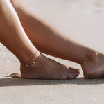 Whether you're heading to the beach or simply enjoying a casual day out, this waterproof and 18k gold-plated anklet will be the perfect addition to any outfit!