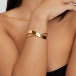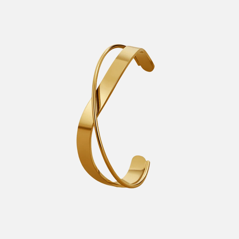 Elevate your style with the Vespera Gold Bangle, a timeless piece crafted from durable, waterproof stainless steel. Its luxurious 18K gold plating ensures a lasting shine, while the hypoallergenic design keeps it comfortable for everyday wear. Say goodbye to fading and tarnishing—this bangle is made to shine, day after day.