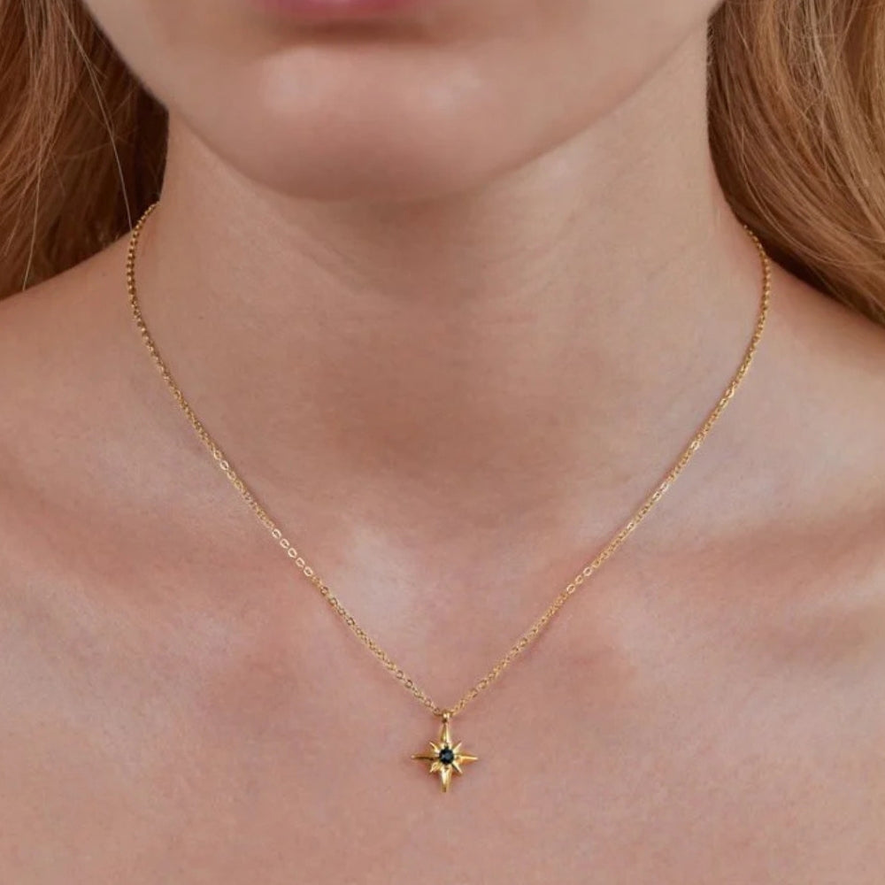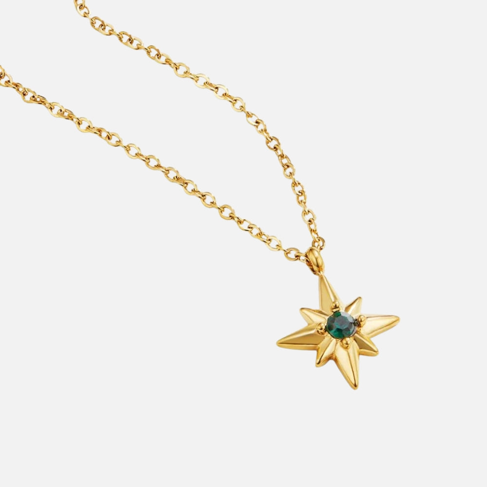 Designed for the dreamers, this necklace is a radiant reminder to follow your own path fearlessly. Featuring a sparkling emerald-hued crystal set in a star motif, it’s crafted from stainless steel with 18K real gold plating — 100% waterproof and tarnish-free. A timeless piece that shines as bright as your ambitions.