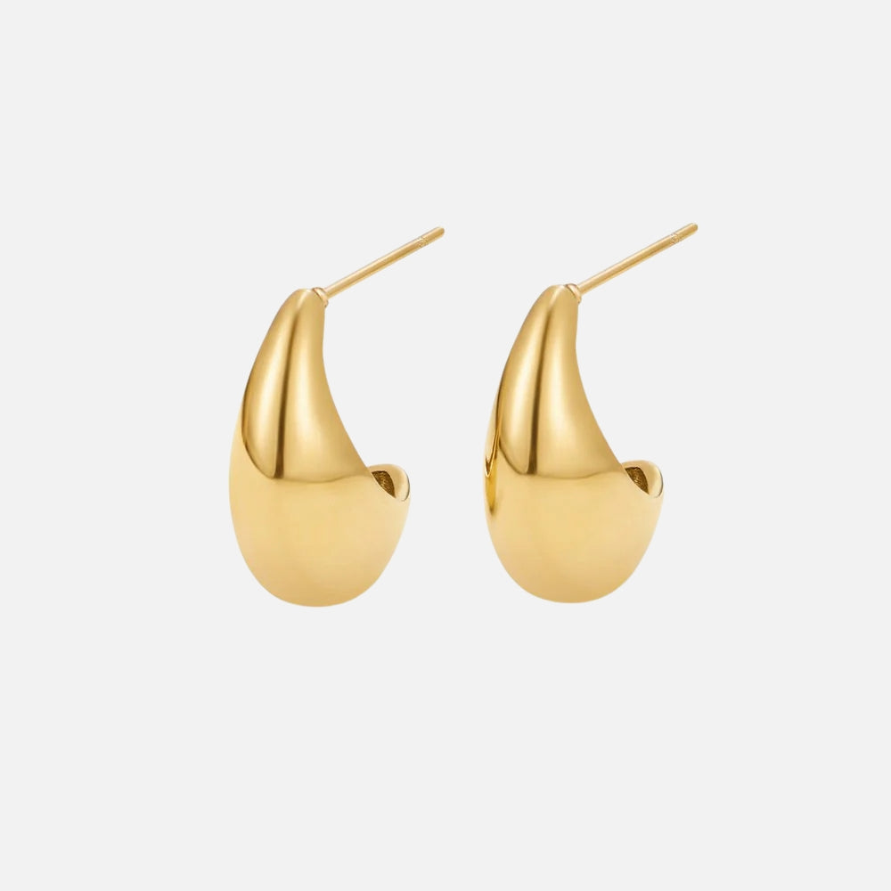 Timeless and versatile, the Aria Hoops are designed for everyday wear with a touch of elegance. Crafted from waterproof, tarnish-free stainless steel and plated in 18K gold, these hoops will keep their shine for years to come — no fading, no worries.