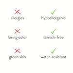 If your jewelry ever loses its gold or silver tone, we’ll replace it - no questions asked.